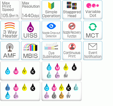 | Цветовая конфигурация | SS21: CMYKLcLmLkOrW BS3/BS4: CMYK ES3: CMYKLcLmW |